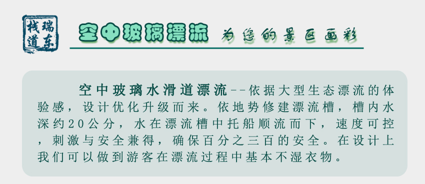 我公司為國內(nèi)首條玻璃滑道設(shè)計(jì)施工單位,擁有十余年經(jīng)驗(yàn),專業(yè)設(shè)計(jì)承建、投資運(yùn)營景區(qū)花崗巖滑道、玻璃滑道、水滑道漂流、大型生態(tài)漂流、玻璃吊橋、棧道等項(xiàng)目。聯(lián)系電話:18032092866(微信號(hào)同電話)