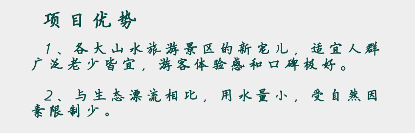 1、各大山水旅游景區(qū)的新寵兒,適宜人群廣泛老少皆宜,游客體驗(yàn)感和口碑極好。